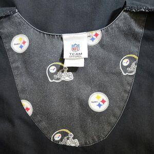 NFL Pittsburg Steelers Scrub Top M Black Logo Team Apparel V-Neck Short Sleeve