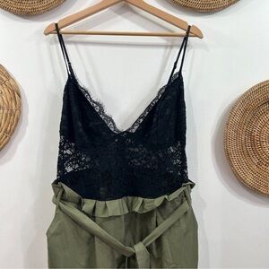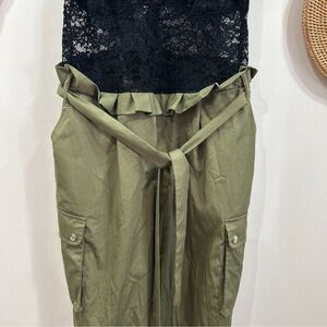 Fashion Nova Black Green Sexy Belted Lace Sheer Cargo Jumpsuit Plus Size 1X