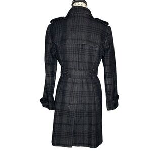 Banana Republic Trench Coat wool Italian fabric check plaid black gray small P
