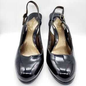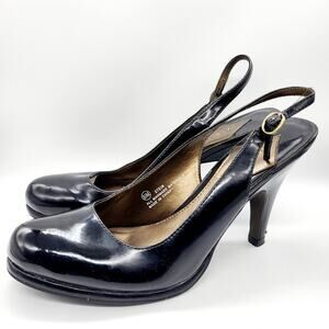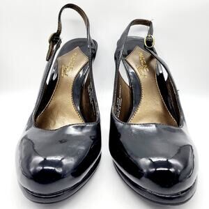 Y2K Madeline Stuart Stein Black Patent Leather Slingback Heels Women’s Size 8.5M