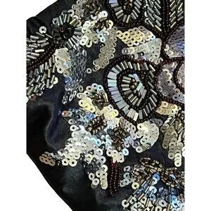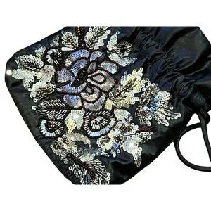 Vintage Jessica McClintock Black Floral Sequin Beaded Evening Formal Bag Purse