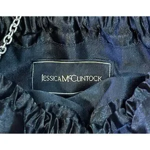 The interior is lined with fabric and has enough space to hold your essentials. This small-sized purse is perfect for women who want to add a touch of vintage elegance to their wardrobe. Get ready to turn heads with this stunning shoulder bag from the Jessica McClintock product line.