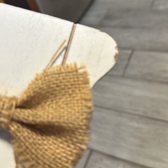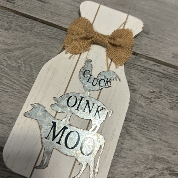 A little wear at the top as shown. Needs a small screw in back to hang as pictured.