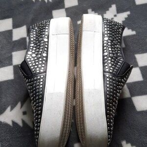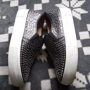 Vince Camuto Kindra Silver Studded Black Leather Slip On Loafers Size 7