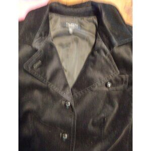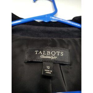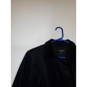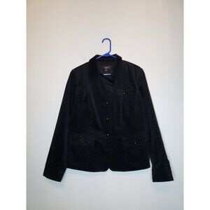 Talbots Womens 12 Velvet Jacket Button Front Black Long Sleeve Pocket Stretch