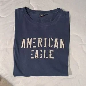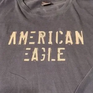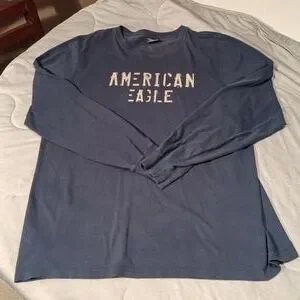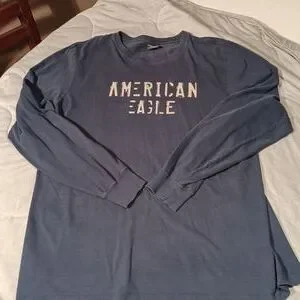 AMERICAN EAGLE OUTFITTERS MENS SZ XL LONG SLEEVE BLUE TEE SHIRT WITH TAN PRINT.