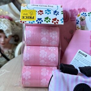 NWT DOG FEMALE SHIRT WITH MATCHING BANDANNA Born to sparkle, poop bags, & holder. The baggies holder comes with loops to secure to the dog’s collar. The baggies holder is stripped pink and white