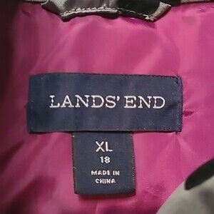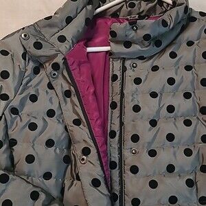 Land's End Polka Dot Black Grey Puffer Jacket XL