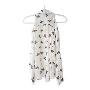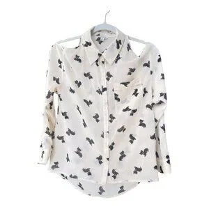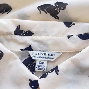 I love H81 Kitten Print blouse Women's Size S/P cream & black cat button down