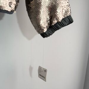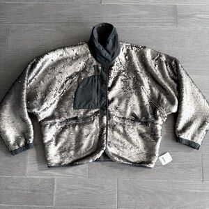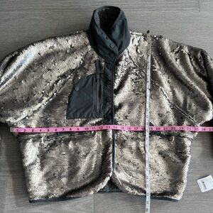 NWT Free People Movement Hit The Slopes Sequin Jacket S Silver Metallic Sherpa
