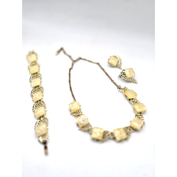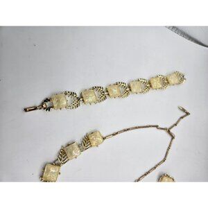 Vintage CORO Demi Parure Pale gold Confetti Thermoset Necklace Bracelet Earring