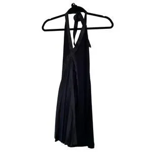 NWT house of dereon pleated black halter tie neck dress
