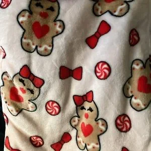 Betsey Johnson htf, sold out, super soft plush throw blanket, pink with peppermint candies, bows, and gingerbread men with the iconic signature Betsey face - long eyelashes and red full lips ππ soooo cute!