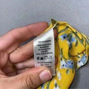 Pleione Women's Short Sleeve Medium Shirt Yellow with Blue Flowers