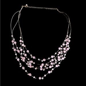 Great layering choker! Pretty little vintage pink beads on three strands. Lobster claws hook.