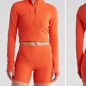 Academy Crop Rib Half-Zip Pullover And shorts set