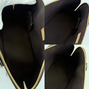 Exterior: 9/10 ( small dent on the side caused by zipper pull, small marks/ scratches on handle and exterior vernis canvas that are caused by tissue papers was wrapped around the handles during storage, unused item)