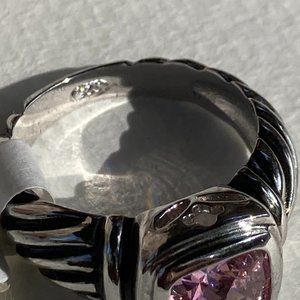 NWT pink faceted CZ gem in sterling silver braided setting ring