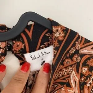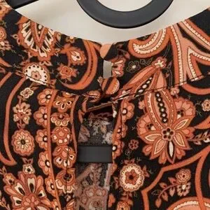 Super cute dress! Rust brown, black and cream paisley print. Lightweight. Loose fitting with bell sleeves.