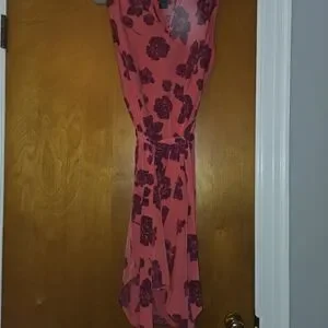 XL red/pink floral dress with belt from Ann Taylor, slight high/low hem, gentle used