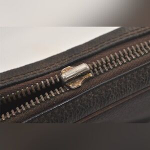 Project bag zipper tab is off and sometimes zip disconnects when closing on tracks natural patina on pictures also act as product description manage your expectations this is a vintage piece