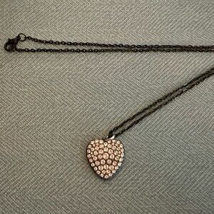 Brand New without tags and absolutely gorgeous describes this Pave Crystal Heart Gunmetal Pendant beautifully displayed on this Black Necklace.