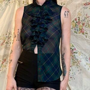 🪅Ralph Lauren Gorgeous Plaid Ruffle Collar Blouse🪅