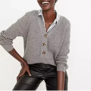 Madewell Ribbed Lyle Henley Heather Grey Sweater