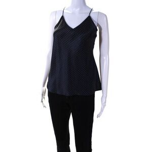 Theory Womens Navy Blue Silk Striped V-Neck Sleeveless Blouse Top Size P