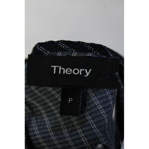 This Theory blouse offers a classic silhouette with a modern twist. Crafted from 100% silk in a striped design, the navy blue blouse features a V-neckline and sleeveless style, making it a perfect addition to your wardrobe. Sized as a petite small, this pre-owned blouse is in good condition and fits regularly, making it a versatile and stylish choice for any occasion.