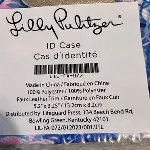 Lilly Pulitzer ID Case. Color: Shade Seekers (Blue, White, and Pink with Gold Trim)