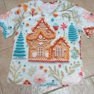 New Gingerbread T-shirt with short sleeves. Armpit to Armpit is 20 inches. Armpit to hem is 14 inches. New without tags. size XL