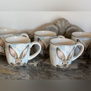 Williams Sonoma Damask Easter Bunny Mug, Set of Four, Discontinued, NWOT