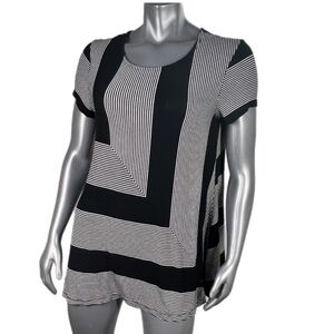 Cable & Gauge Black & White Stripe Short Sleeve Tunic Top