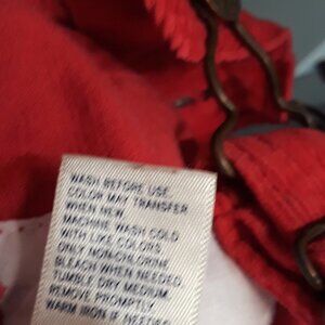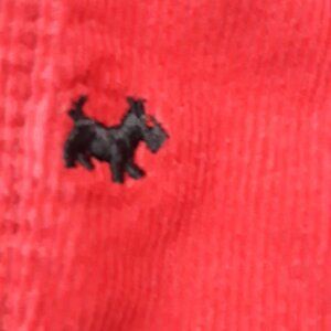 100% cotton red corduroy fabric with embroidered black scotty dog pattern