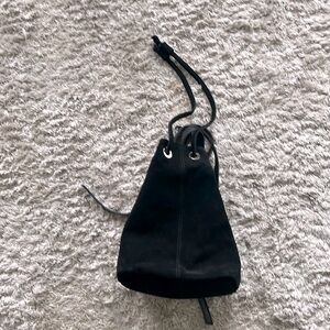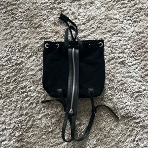 NWT URBAN OUTFITTERS Black Suede Drawstring Backpack w/Silver Grommets & Zipper