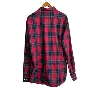 Barbour Castlebay Tailored Fit Shirt Men's XL Navy Red Tartan Plaid Long Sleeve
