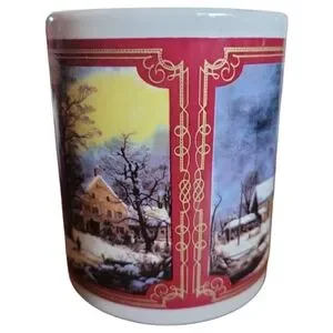 Vtg 97 Currier & Ives HF Coffee Tea Mug Cup Winter Country Cold Morning