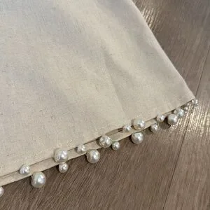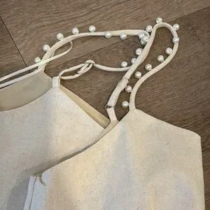 Pearl Details Cropped Top Beige Linen Straps Medium