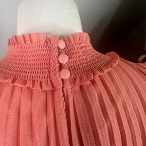 Nanette Lepore Iridescent Coral Pleated Smocked Keyhole Close Cocktail Dress 8