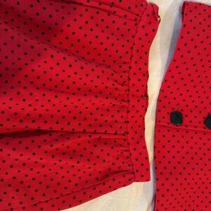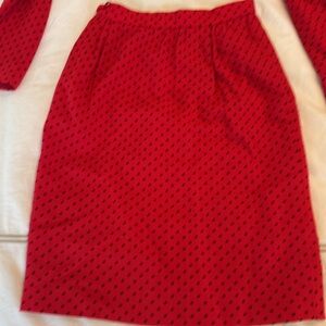 Vintage Valentino Suit. Tomato Red and Black Polka Dot Silk Lined -European 6