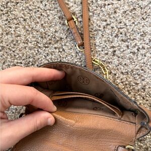 Tory Burch Brown Leather Snap Chain Mini Crossbody Clutch