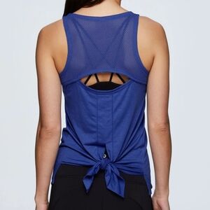 Set of 3 RBX mesh cut back tie tank tops, size M, blue pink black