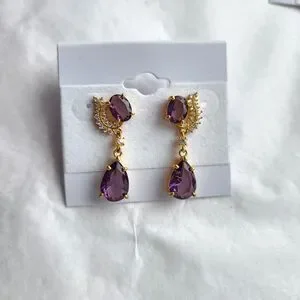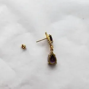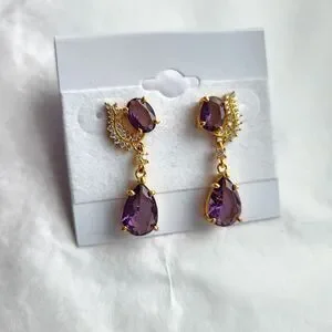Amethyst Earrings Post Back 925 Sterling Silver Gold Vermeil Dangle New Romantic