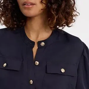 Balloon Sleeve Novelty Button Front Pockets Shirt