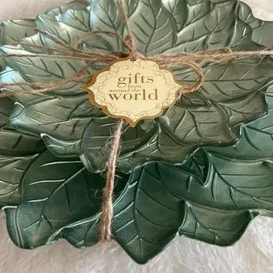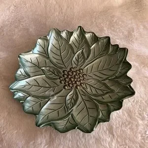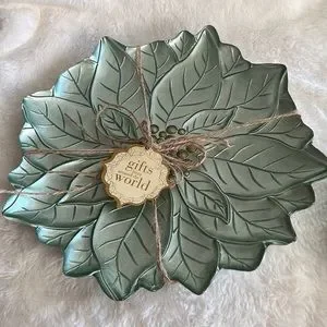 2 Turkish Glass Green Gold Poinsettia 12” 9” Dining Serving Plates Set of 2 NWT