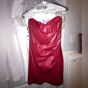 Beautiful faux leather dress! Purchased from REVOLVE, wore once this fall and had it dry cleaned. I got compliments on this dress all night! It’s got a bit of stretch to it, which makes it really comfortable and easy to move in. Details from the original listing when I bought it: