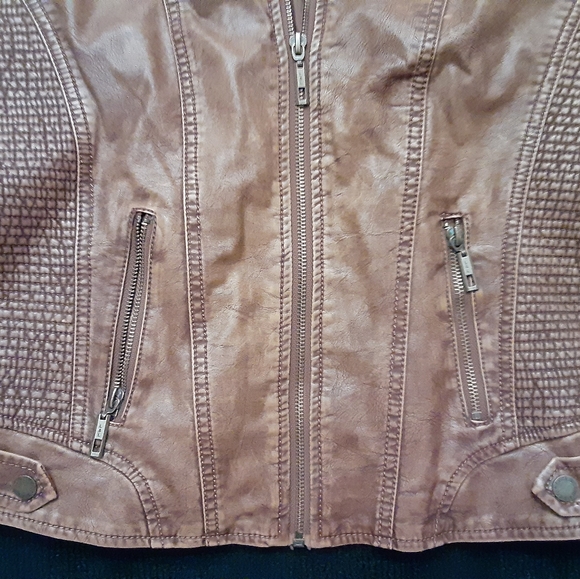 Faux leather jacket from Lock & Love. Front zip with neck snap.2 front zip, functional pockets. Pre-loved but still in great condition.