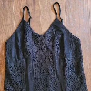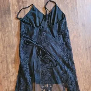 excellent condition, beautiful lace detail, lined to mini, tie waist, adjustable bra straps