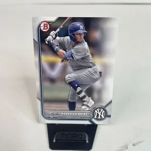 This 2022 Bowman Draft trading card features Roderick Arias, a promising prospect for the Yankees. The card is made of high-quality card stock with a thickness of 20 Pt. and an original design by Bowman. It is a great addition to any baseball fan's collection, especially those who are looking for a rookie card.